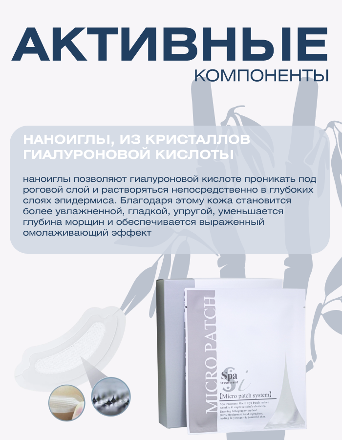 Японские патчи с микроиглами созданы специально для увлажнения кожи в проблемных зонах лица - вокруг глаз и губ. Они позволяют активному ингредиенту попадать в глубокие слои кожи, не теряя своих свойств давать ощутимый эффект сразу после первого применения.