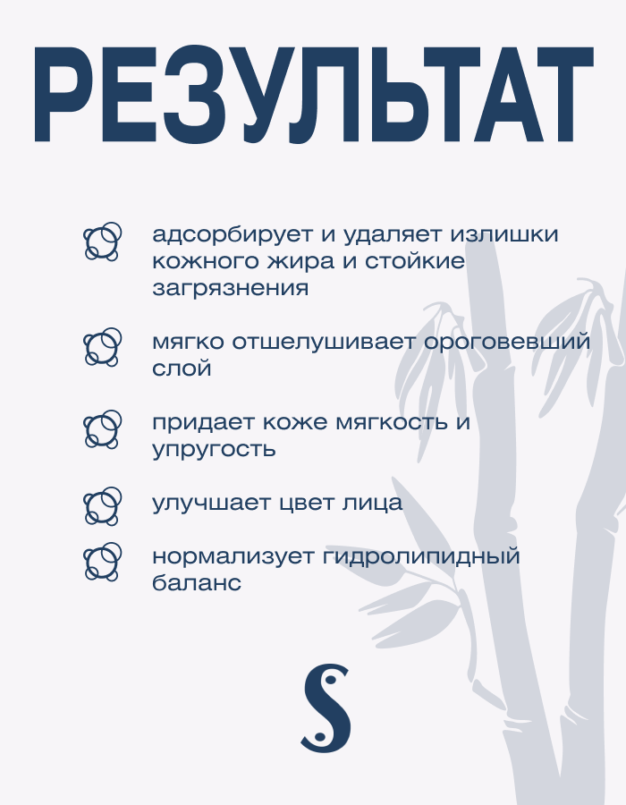 • Адсорбирует и удаляет излишки кожного жира и стойкие загрязнения