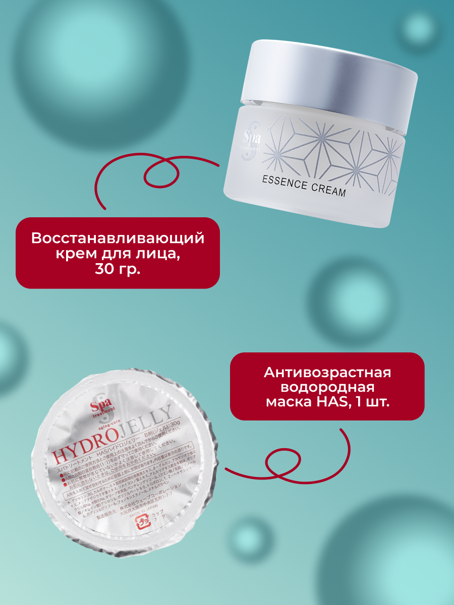 1. Регенерирующий крем-эссенция Spa Treatment Essence Cream G 30 гр; 2. Двухкомпонентная водородная маска с экстрактом стволовых клеток Spa Treatment Hydro Jelly 1 шт.