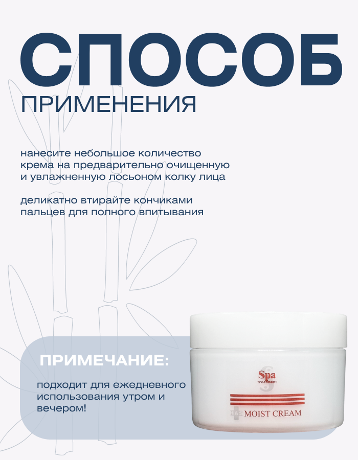 ✔Увлажняющий антивозрастной крем для лица Spa Treatment HAS Moist Cream Aging-Care Series легко проникает в глубокие слои эпидермиса, стимулирует активное обновление клеток, возвращает лицу сияние и здоровый вид. Не содержит масло ши, алоэ и пантенол крем!